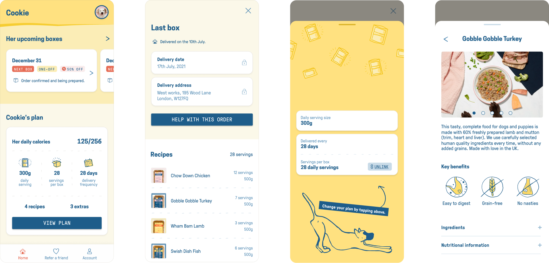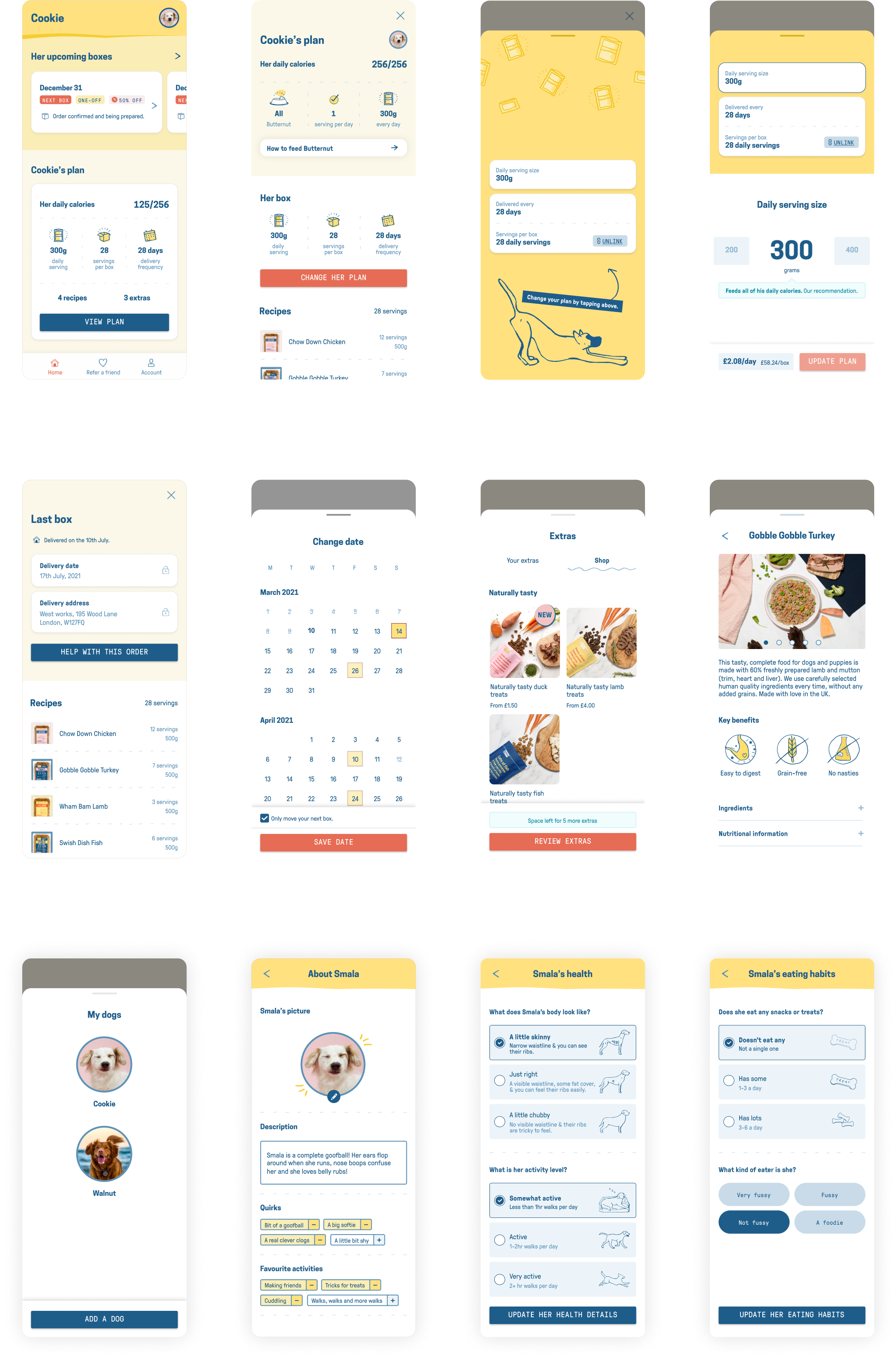 Butternut had a web experience that allowed users to manage their subscriptions, their dog’s plans, recipes and details. The goal of this project was to bring the Butternut experience to a mobile app while fixing the website issues.